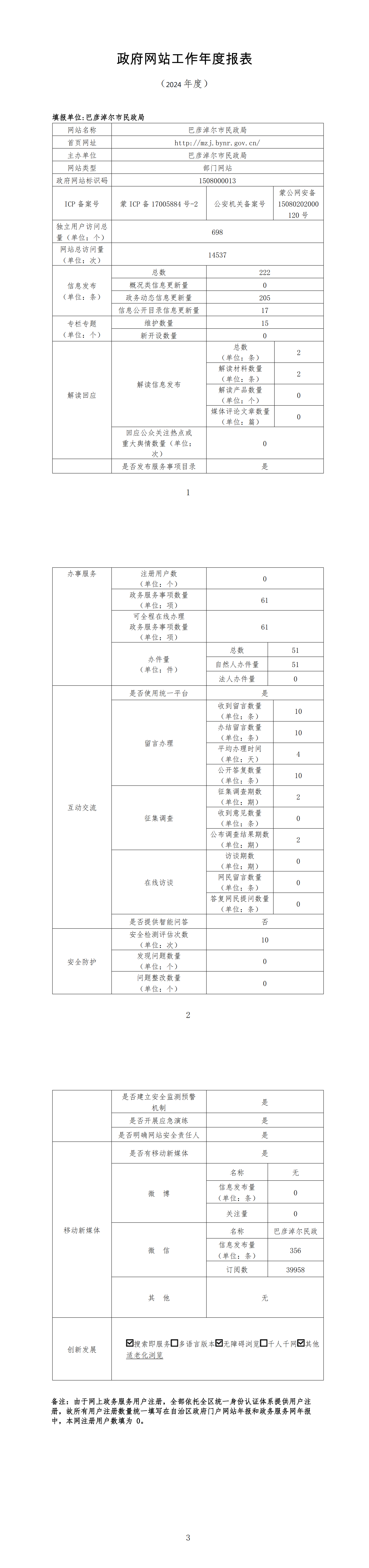 2024年度巴彦淖尔市民政局政府网站工作年度报表